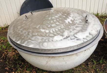 Conical shape fire pit cover with side lip. 1" 2" 3" Deep.. Contact us to order.